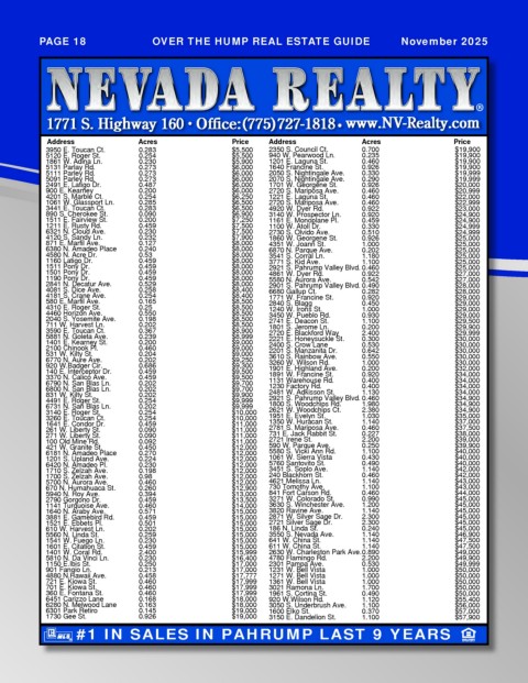 4491 E. Roger St. 0.254 $9,999 2921 S. Pahrump Valley Blvd. 0.460 $34,900