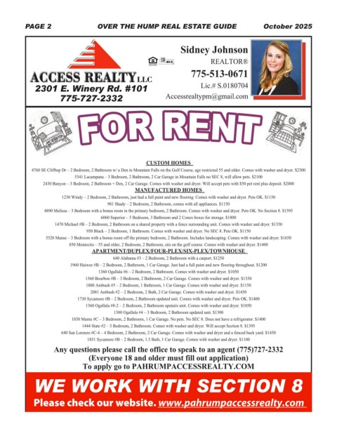 PAGE 2 OVER THE HUMP REAL ESTATE GUIDE October 2025