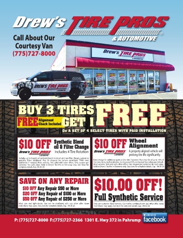 complete details. Exp. 04-30-26 Valid at Drew’s Tire Pro in Pahrump only. See store for complete details. Exp. 04-30-26