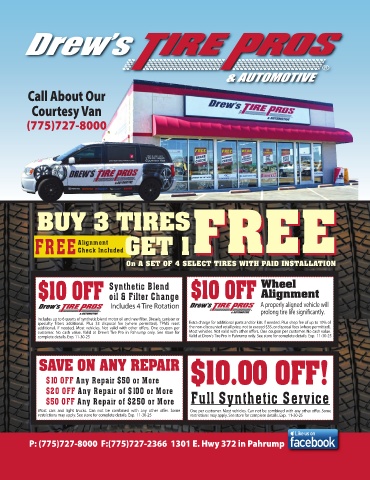 complete details. Exp. 11-30-25 Valid at Drew’s Tire Pro in Pahrump only. See store for complete details. Exp. 11-30-25