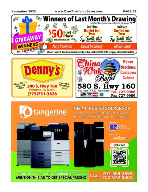 Winners have 30 days to claim cash prize by calling us at (775)727-8787 See page 6 for contest details.